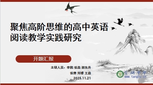 2025年11月21日上午,由我校李鹏老师主持的成都市规划办课题《聚焦高阶思维的高中英语阅读教学实践研究》开题论证会,在棠湖中学双江路校区尚善楼三楼会议室三隆重举行。本次会议邀请到权威专家组成评审团,包括四川师范大学博士生导师、四川省普通中小学教科研入库专家郑鸿颖教授,四川省特级教师苏俊清,以及成都市双流区教育科研与劳动教育教研员雷婕。棠湖中学教科室副主任先有利出席会议并给予指导,为课题开题保驾护航。